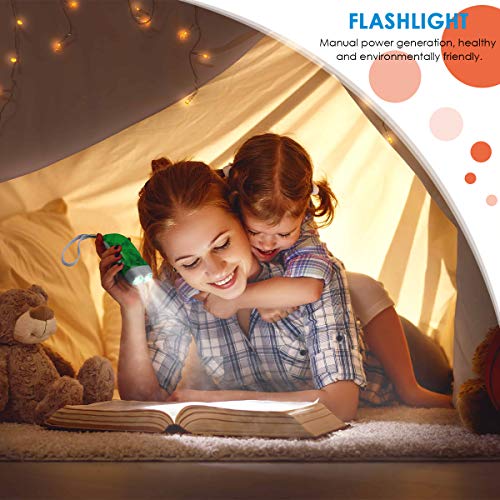 4.【Taschenlampe & Rucksack】 – Bei hellen LED-Leuchten bedeutet einfache Handkurbelfunktion, dass keine Batterien oder Ladevorgänge erforderlich sind. Die kompakte Größe macht es perfekt für Camping, Übernachtungen und nächtliche Spannung im Hinterhof. Der praktische Rucksack erleichtert das Befestigen und ermöglicht den abenteuerlustigen Kindern das Erkunden und Lernen.