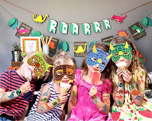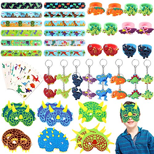 Dinosaurier kindergeburtstag mitgebsel Set: 16 Stück Dinosaurier Schlüsselanhänger, 12 Stück Dinosaurier Slap Armbänder, 12 stück Dinosaurier Masken, 12 Stück Dinosaurier Ringe und 12 Stück Dinosaurier tattoos. Lasst uns die aktuelle Welle der Dinosaurier-Popularität reiten.