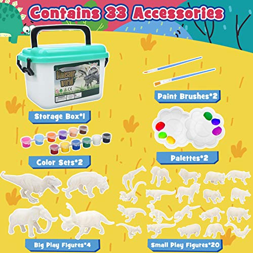 【Mal-Set】 33 Stück Malspielzeug enthalten Farbsets * 2, Palette * 2, Pinsel * 2, Dinosaurier * 10, Tiere * 14, Aufbewahrungsbox * 1.