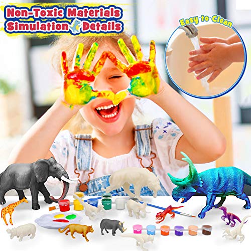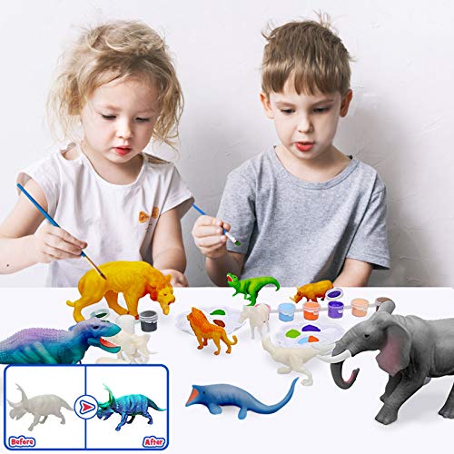 【Malen Sie Ihr eigenes Handwerk】 Kinder können ihrer Fantasie freien Lauf lassen und ihre Lieblingsfarben verwenden, um Dinosaurier und Tiere zu übermalen.