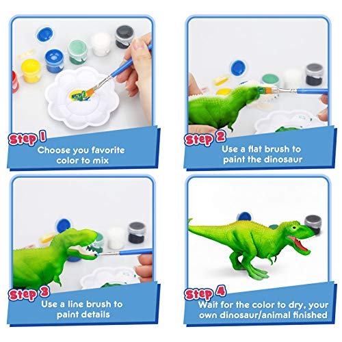 【Ungiftige Materialien】 Das Lackierzubehör verwendet ungiftige Materialien. Die Farbe des Dinosauriers kann gereinigt und wiederverwendet werden. Wenn Sie die Farbe des Dinosauriers beibehalten möchten, müssen Sie ihn an der Luft trocknen.
