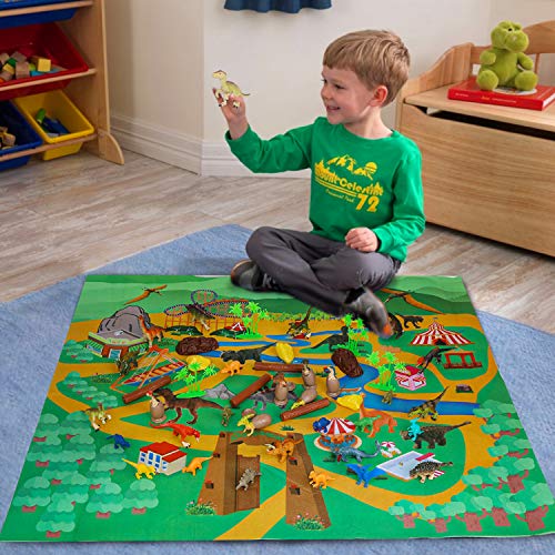 Vanplay Dinosaurier Spielzeug umfassen Dinosaurier Figuren und Dino Ei Kindergeburtstag Deko mit Spielmatte und Box 53St