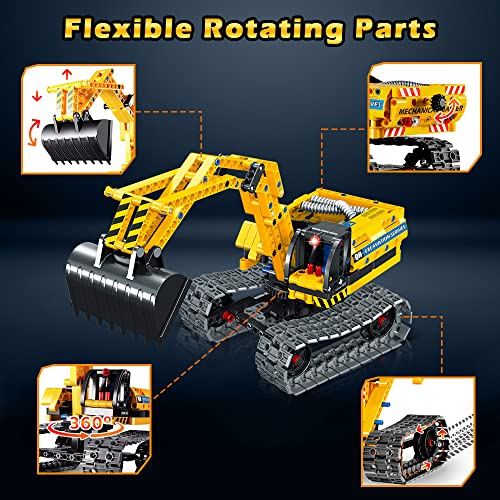 Kreatives Lernspielzeug — Unser Technic-Spielzeugbausatz kann helfen, die Fähigkeiten Ihrer Kinder beim Spielen zu eintauschen und herauszufinden, wie man die Teile zu einem vollständigen Baggerspielzeug zusammenbaut. Entwickelt Kreativität, logisches Achten und Fähigkeiten zur Problemlösung, Baufahrzeugen kann Kindern helfen, Zusammenarbeit zu lernen und Kreativität zu inspirieren