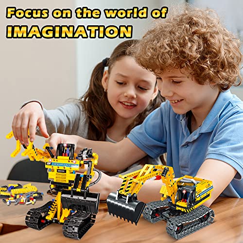 VATOS Technik Bagger Spielzeug Roboter 2-in-1 – Spielzeug Bausätze für Kinder ab 6 7 8 9 10 Jahre Jungen | STEM Kran Spielzeug Raupenbagger & Roboter 342 Teile Geschenk