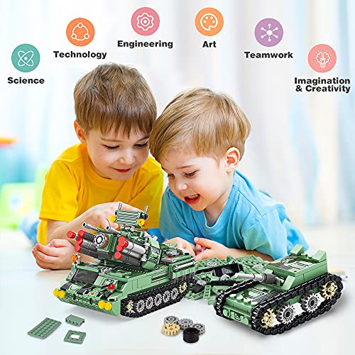 【35-in-1-Bauspielzeug】Das VATOS Baukasten für strategische Miliitärfahrzeuge enthält 832 PCS, die zu einem großen Roboter oder Panzern oder 8 kleinen Miliitärrfahrzeugen zusammengebaut werden können (jedes kleine Modell kann in 4 verschiedene Arrangieren umgewandelt werden)! Das Miliittärroboter-Kit fordert Ihre Kinder heraus und beschäftigt sie stundenlang!