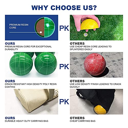 ★ Premium-Qualität: Unsere Boccia-Bälle sind aus hochwertigem hartem Polyresin für eine langfristige Nutzung. Mit einem wasserdichten und reißfesten Material, kÃnnen Sie jedes Jahr für Jahr überall Boccia-Sets spielen, so dass Sie eine Ausrede haben, an einem Wochentag nach der Arbeit draußen zu sein und Zeit im Garten mit Freunden und Familie zu verbringen.