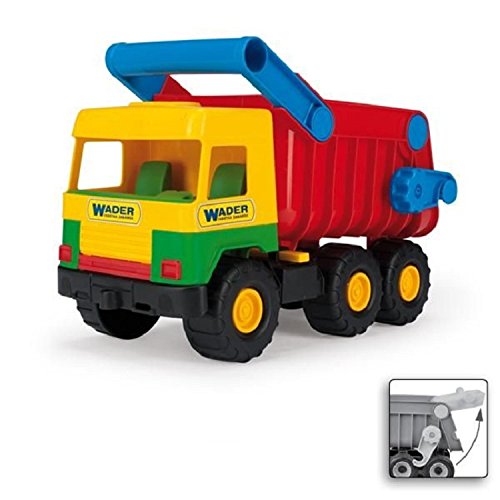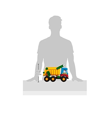 Mit dem großen Truck können in der Tat die Kleinsten ab 12 Monaten ihren großen Idolen nacheifern. Der Kipper ist ca. 38 x 20 x 25 cm groß und mit einem Griff und einer arretierbaren Mulde ausgestattet. Mit dem Baustellenfahrzeug können Spielsachen, Sand oder Kieselsteine von A nach B transportiert werden. Beim Spielen werden motorische Fähigkeiten, Absprache und Sozialverhalten gefördert sowie die Fantasie des Kindes angeregt. Das Spielzeug besteht nicht mehr da robustem Kunststoff, frei von jeglichen Schadstoffen, es ist hochwertig verarbeitet und als Folge enorm langlebig, aka wenn das Spross einmal derber folglich spielt.