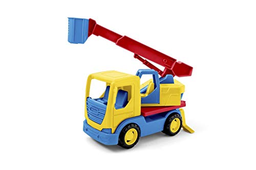 Mit dem Baustellenauto können schon die Kleinsten ab 12 Monaten ihren großen Idolen nacheifern. Der Kranwagen ist ca. 29 x 11,5 x 32 cm groß und mit einer drehbaren Basis inkl. Fahrerkabine sowie einem beweglichen und ausziehbaren Arm inkl. Krankorb ausgestattet. Die am Fahrzeug angebrachten Verstreben stabilisieren und sichern den Kran während des Betriebs. So ist es mit dem Baustellenfahrzeug ganz einfach, Höhenarbeiten, Reparaturen und Rettungsmanöver auszuführen. Zudem besitzt der LKW breite Reifen und Stahlachsen, die dem Baufahrzeug eine hohe Stabilität verleihen. Das mobile Kranfahrzeug in attraktiven Farben ist ein leichtes und wendiges Produkt, mit dem die kleinen Bauherren Materialien auf der Baustelle bewegen können – ideal für zu Hause oder draußen im Freien. In Kombination mit weiteren Fahrzeugen und Modellen von WADER können Jungen und Mädchen viele spannende Situationen nachspielen. Somit werden motorische Fähigkeiten, Absprache und Sozialverhalten gefördert und die Fantasie des Kindes angeregt. Das Spielzeug besteht aus robustem Kunststoff, ist frei von jeglichen Schadstoffen, hochwertig verarbeitet und dadurch besonders langlebig.