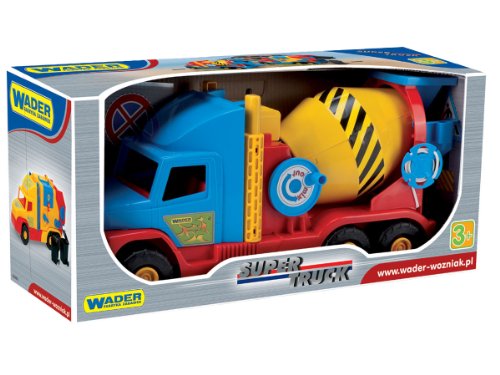 Mit den Super Truck Fahrzeugen können schon die Kleinsten ihren großen Idolen nacheifern. Der Betonmischer ist ca. 59 x 19 x 27 cm groß und mit einer drehbaren Mischtrommel ausgestattet. Beim Spielen werden motorische Fähigkeiten, Absprache und Sozialverhalten gefördert sowie die Fantasie des Kindes angeregt. Das Spielzeug besteht jeder robustem Kunststoff, frei von jeglichen Schadstoffen, es ist hochwertig verarbeitet und dadurch überaus langlebig, aka wenn das Nachkomme einmal derber damit spielt.
