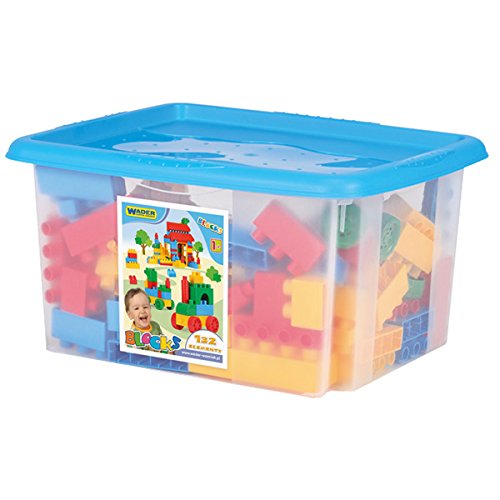 Wader 41270 Bausteine Blocks, 132 Stück Bauklötze mit Räder, Tür und Fenster, ab 1 Jahren, Mehrfarbig