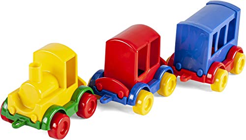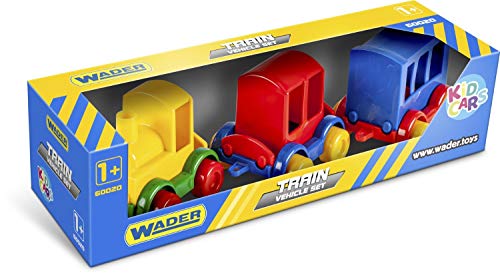 Mit dem Set aus 3 stabilen Fahrzeugen in attraktiven Farben können schon die Kleinsten ab 12 Monaten ihren großen Idolen nacheifern. Der Zug und die Jünger bringen jede menge Spaß ins Kinderzimmer! Die Vehikel der Kid Cars Nachfolge sorgen so ganz einfach für realistische Bahnabenteuer. Zudem besitzt das Lok-Set breite Reifen und Stahlachsen, die den Spielzeug-Autos eine hohe Stabilität verleihen. Die Lokomotive und die Beiwagen sind leicht, wendig und laden zum Spielen ein – ideal für zu Hause, draußen im Freien oder Sandkasten. In Kombination mit weiteren Fahrzeugen und Modellen von WADER können Jungen und Mädchen viele spannende Situationen nachspielen. Somit werden motorische Fähigkeiten, Koordinierung und Sozialverhalten gefördert und die Fantasie Ihres Kindes angeregt. Das Spielzeug-Set besteht aus robustem Kunststoff, ist frei von jeglichen Schadstoffen, hochwertig verarbeitet und dadurch besonders langlebig.