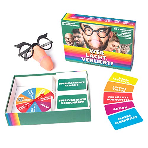 WER LACHT, VERLIERT! Das lustigste & dümmste Brettspiel Aller Zeiten – Witziges Niveaulimbo für Erwachsene, 2 bis 99 Spieler