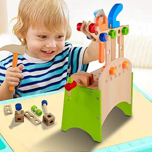 Kinder im Vorschulalter werden es lieben, mit Hammer, Schraubenschlüssel und Schraubendreher ihre Projekte zu erstellen und dann ihre gesamte Ausrüstung in den stabilen Werkzeugkasten kinder holz mit Griff zu packen.