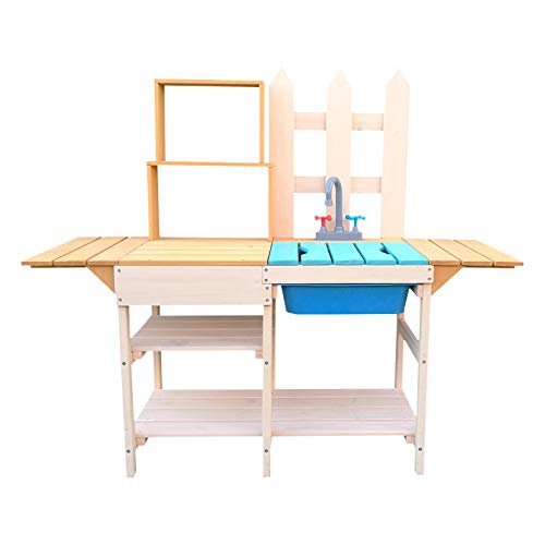 Mit dieser Outdoor Kinderküche inspirieren Sie die Kleinen zum Spielen und Lernen in der Natur. Denn die Matschküche bringt nicht aber Vielfältigkeit mit sich, sondern auch andere Spielmöglichkeiten, da sie draußen unter freiem Himmel steht. Hier kann mit Materialien gespielt werden, die innerhalb der vier Wände vermieden werden. So kann das Derivat mit Wasser, Erde, Sand, Blättern, Blüten sowie Kastanien hantieren und die heimische Einrichtung bleibt verschont.