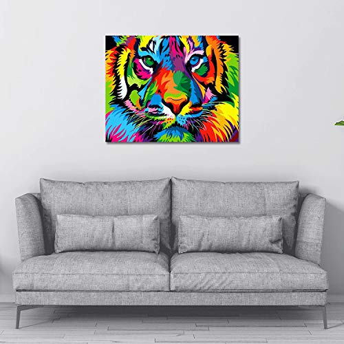 ✔PRODUKTFUNKTION – Malen nach Zahlen-Kit auf Leinwand, rahmenlos 16 x 20 Abgabe, DIY Buntes Tiger Ölgemälde Muster. Diese Leinwand ist eine vorgedruckte Textur-Leinwand, die haltbar und leicht zu färben ist und kleine Malbereiche hat, die Ihre Aufmerksamkeit beruhigen und konzentrieren können.