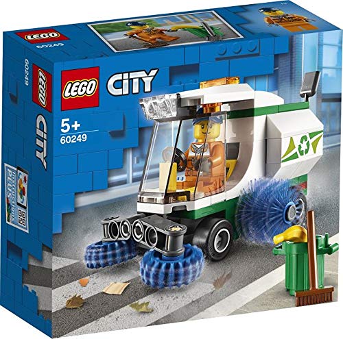 Inhalt des Sets: Eine coole LEGO City Straßenkehrmaschine mit Platz für eine Minifigur sowie eine Abfalltonne, eine Schaufel und eine Banane. Alles, was ein Heranwachsender für selbstständigen Spielspaß benötigt. Diese Straßenkehrmaschine verfügt über realistische Bürsten, die sich drehen, wenn das Spielzeug angeschoben wird. Kinder können dieses Set auch mit anderen echten LEGO Spielsets schlussfolgern, um mit ihnen zu spielen oder coole Schaustücke zu erschaffen.