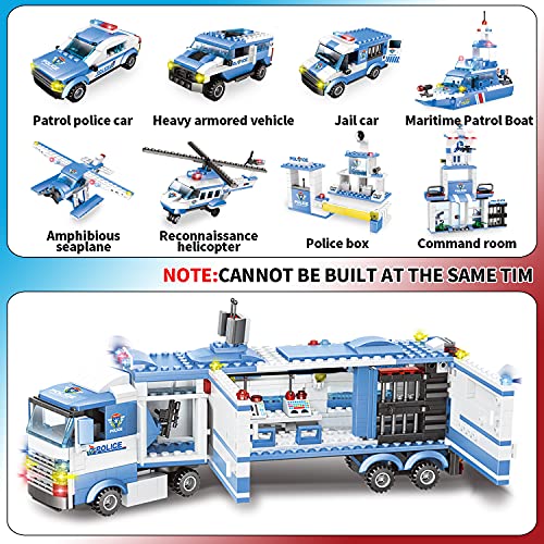 🚔 【8 in 1 Stadtpolizei】: Sie erhalten einen vollständigen Satz von 1022 Bausteinen, Kinder werden endlosen Spaß daran haben, einen mobilen Kommandozentralen-LKW und ein Polizeipräsidium zu bauen, oder es in 8 Arten von Polizeiautos umzubauen, wie Polizeistation, Hubschrauber, Polizeiposten, Kreuzer usw. Warmer Tipp:Sie müssen es zu einem Modell zusammenbauen.Die Anzahl der Blöcke kann Ihnen nicht erlauben, alle im Bild gezeigten Modelle gleichzeitig zu bauen.