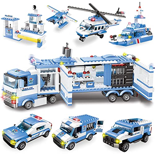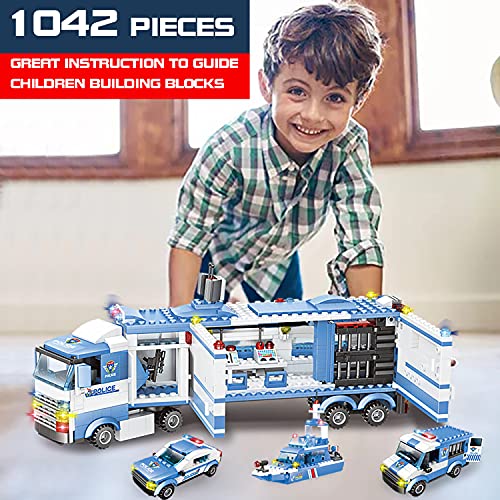 WYSWYG City Polizei Bausteine Spielzeug ab 6 7 8 9 10 Jahren für Jungen, 1042 Teile 8 in 1 Polizeistation Bausteine Set…