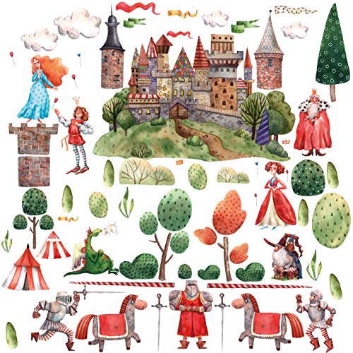 XXL Wandtattoo Ritter Ritterburg Set verschiedene Motive| Kinderzimmer Aufkleber bunt Wanddeko