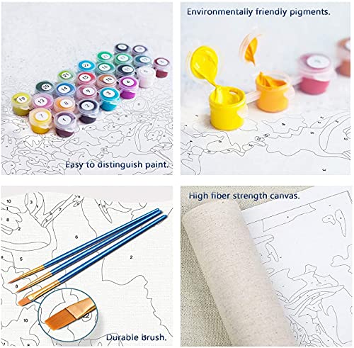 ✨【Hochwertige Farbe und Leinwand】 Die Farbe ist ungiftig, abgehärtet und hochwertige Acrylfarbe. Sie sind umweltfreundliche Pigmente mit hoher Helligkeit, hellen Farben, hoher Konzentration und ohne Wasser. Die von uns bereitgestellte Leinwand ist eine zweifarbig bedruckte Leinwand, die leicht mit malen nach zahlen und die Augen besser schützt. Die professionelle Leinwand hat eine klare Textur und ist leicht zu färben.