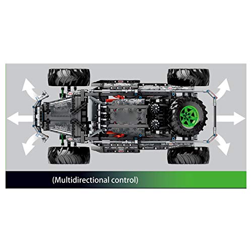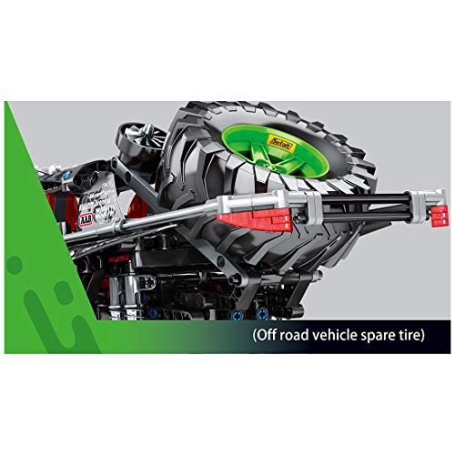 Technik Offroader mit 1233 Teile, In Anlehnung an das Exterieur-Design von Renn-Geländefahrzeugen. Die fertige Größe beträgt: 47 x 24 x 24cm (L / B / H);
