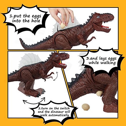 Unter die Dinosaurier Bauch befindet sich ein An-/Ausschalter. Einmal eingeschaltet, die Dinosaurier Augen Flash Roaring und sein Schwanz wackelt beim Gehen, klingende und aufhellen, es wird automatisch langsam mit Schwanz und Kopf Schwung um Eier legen. Eine großartige und fantastischen Spielzeug oder Geschenk für Kinder Geburtstag. “ werden absolut liebe Ihrer Kinder.