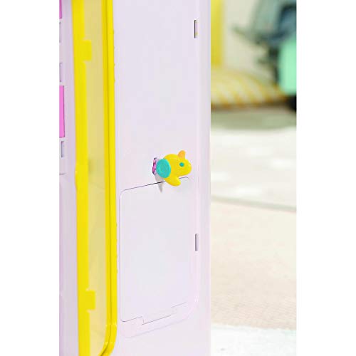 ✔ Beim Beule auf den pinken Knopf auf dem Dach beginnt die Ente sich zu drehen und es erklingt eine Meldodie bis die Ente nahe einer der vier Jahreszeiten stehen bleibt – dadurch weiß BABY born was sie anziehen muss