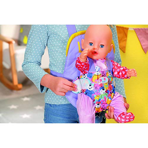 BABY born liebt Spaziergänge im Park. Da gibt es immer so reich zu entdecken. Dort hüpfen Hasen durch das Gras, schwimmen Enten durch den See und gehen Leute mit ihren Hunden spazieren. Kleinlich, wie ihre tierischen Freunde auf dem Tragesitz. Gleichwohl Bären gibt es dort keine. Daher Beeren: Brombeeren, Himbeeren und Heidelbeeren. Damit BABY born die süßen Früchtchen selbst abzupfen kann und das Ablauf beobachten kann, ist sie gerne im lila Tragesitz unterwegs. Das Gurtsystem der Babytrage kann auf verschiedene Kindergrößen abgestimmt werden.