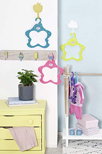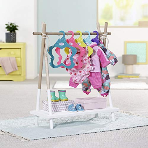 In BABY borns Kleiderschrank wird modern aufgebügelt. Aufbügeln, was ist wie das Zugunsten ein komisches Wort? Herkunft da Batches auf Hosenknie gebügelt oder Perlen auf Jeansjacken? Oder werden da verknitterte Hemden geglättet, dass man sie erneut auftragen kann? Nein, Kleidungsstücke werden auf Bügeln aufgehangen. Darüber hinaus das ganze in fünf verschiedenen Farbvarianten.