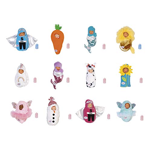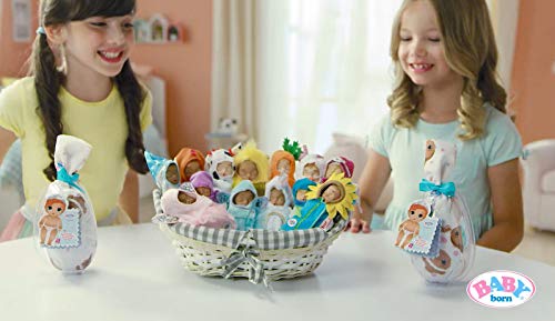 ✔ Die 11 cm großen BABY born Surprise Baby Püppchen schlafen in einem Kokon, z.B. als Karotte, Schneemann, Sonnenblume oder Einhorn