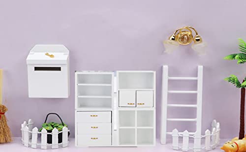 Zerodis Maßstab 1/12 Puppenhaus Zubehör Holz Schrank Möbel Wohnzimmer Schlafzimmer Schrank Einheit für Puppenhaus(Weiß)