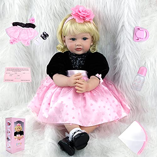 ZIYIUI Reborn Babypuppen 24 Zoll 60 cm Weiches Silikon Vinyl Reborn Baby Mädchen Handgefertigt Neugeborenes with Lange…