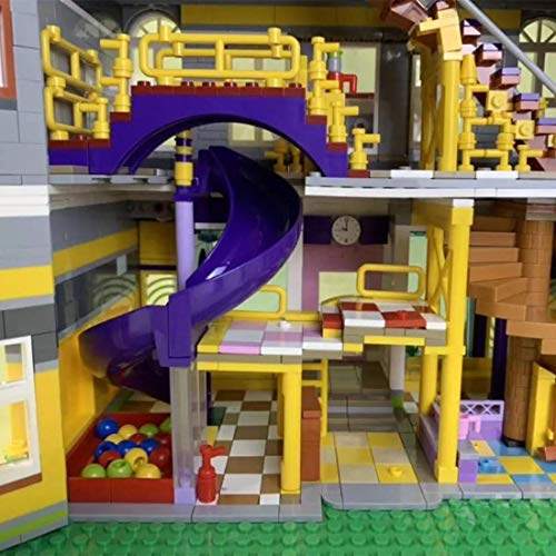 Das dreistöckige Gebäude eines Eckstadthauses mit Architektur lässt sich von achtern öffnen, mit lustigen Türen, Fenstern, Treppen, Rutsche, Spielkonsole und weiteren Details.