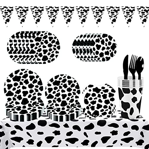 🐄【Wertverpackung】 Sie erhalten 82 Stückchen schwarz-weißes Partyzubehör mit Kuhdruck, einschließlich 20 * 7-Verzinsung-Teller, 20 * 9-Verzinsung-Teller, 20 * Pappbecher, 20 * Servietten, 20 * Gabeln, 20 * Messer, 20 * Spoos , 1 * Tischdecke, 1 * Wimpel. Eine ausreichende Absolutbetrag wird Ihre dekorativen Bedürfnisse befriedigen, wenn Sie eine Party organisieren, und lässt Ihre Tischdekoration abgedreht aussehen.