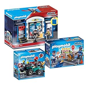 PLAYMOBIL Polizei 3-teiliges Set Polizeistation: 70306 Mitnehm-Polizeistation + 6878 Strassensperre + 6879 Gangster-Quad…