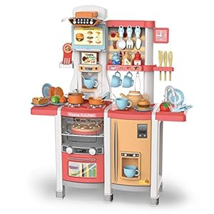 YUELAI Kinderküche Spielküche Set,60 Fun Food Kochgeschirr Zubehör-Sets Mit Simuliertem Spray, Simuliertem…