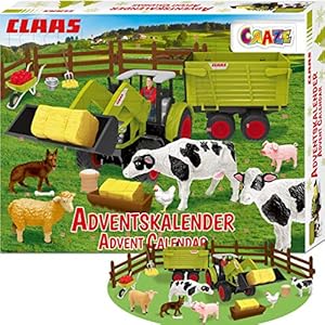CRAZE Adventskalender Kinder CLAAS Spielzeug Adventskalender mit Bauernhof Figuren und Traktor, 24 Überraschungen, Adventskalender Jungen