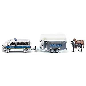 siku 2310, Polizei-PKW mit Pferdeanhänger, Inkl. 2 Spielzeug-Pferden, 1:55, Metall/Kunststoff, Silber/Blau…