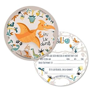 12 Einladungskarten Kindergeburtstag Dinosaurier, Die Kinder Geburtstagseinladung für Jungen und Mädchen, Geburtstags Karte Dino (Dino ohne Kuvert)