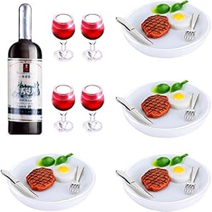 33 Stücke Puppenhaus Miniatur Essen Getränke Set Mini Weinflaschen Miniatur Weingläser Teller Mini Messer Gabel Steak…